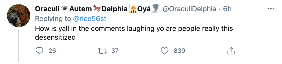 When I look at the context, content, and users of this Tweet, I see disaster and tragedy. I see human beings in pain. An algorithm cannot see what you and I see. Maybe one day it will. Then it would recognize that is isn’t content that I want to engage with. Then it wouldn’t show it to me. Hopefully.
