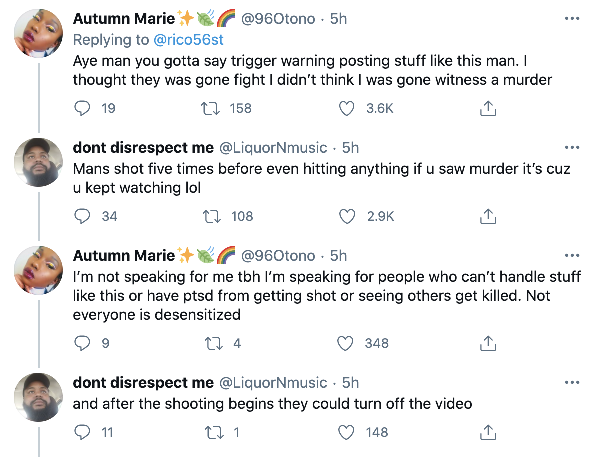 As soon as this video began, I expected that I was going to see video footage of the shootings. Every part of the interface assured me: “This is a good Tweet.” I agreed and kept watching. I could have stopped the video and walked away at any point. I could have. I probably should have. But I didn’t.